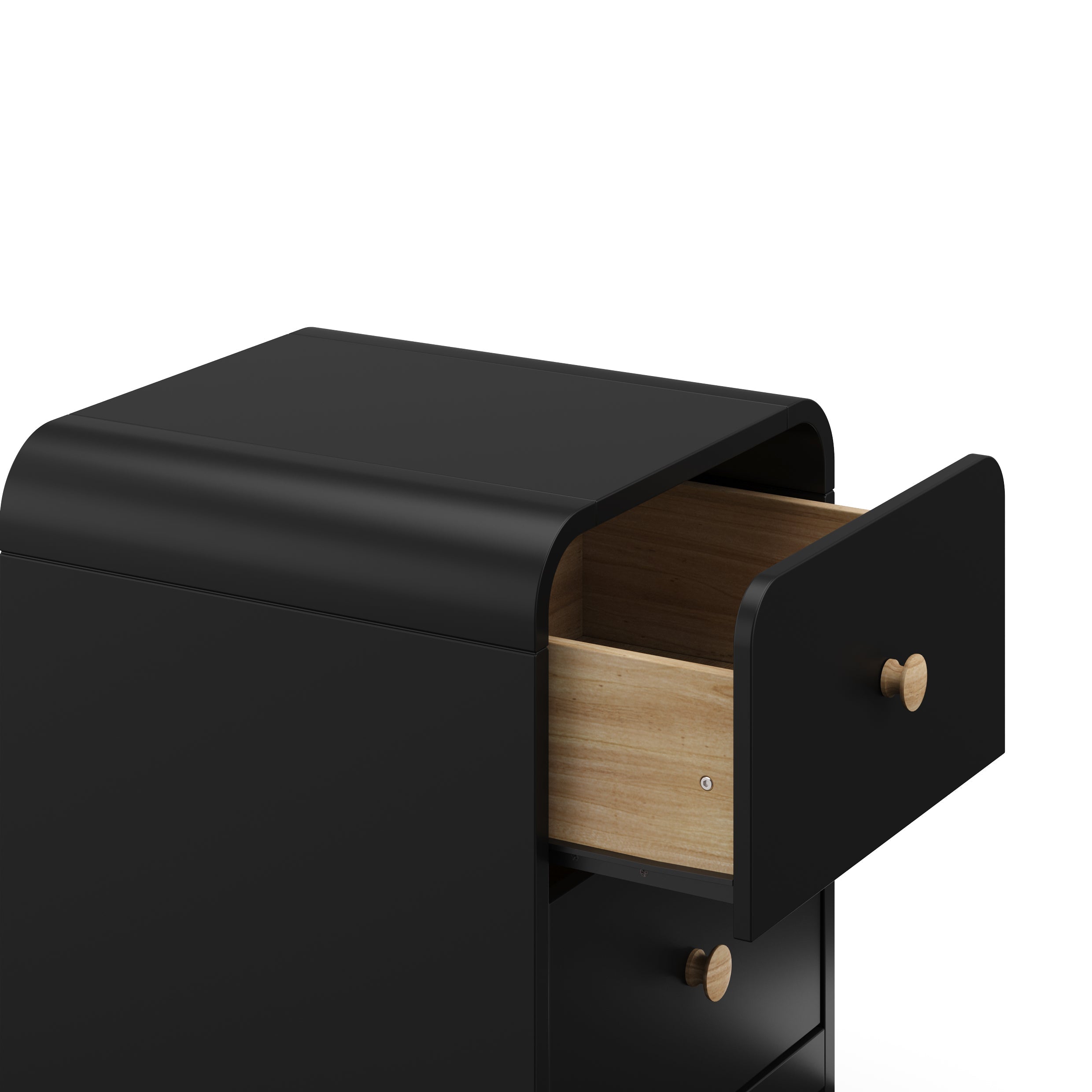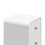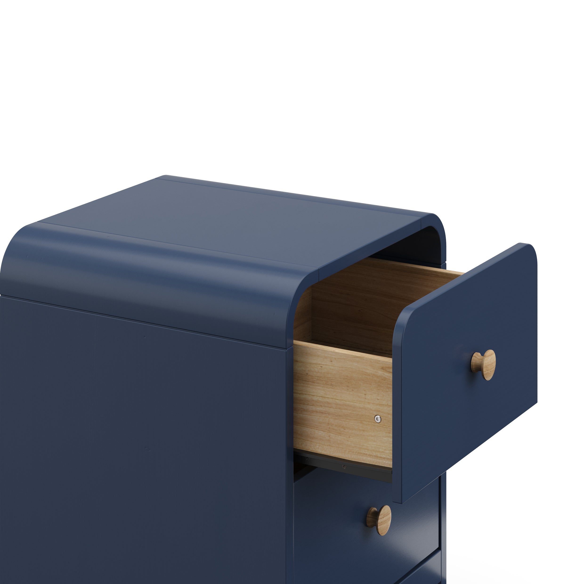 Organize your kids bedroom in style with the Santos nightstand. With its clean lines, rounded silhouette, and two-tone aesthetic, the Santos is sure to add a pop of style and storage convenience to any kids bedroom.